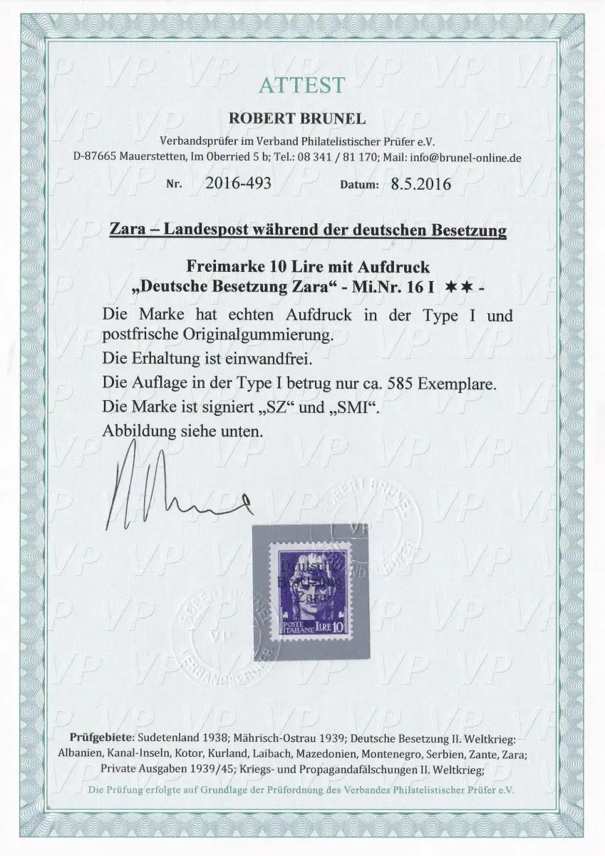 Zara: MiNr. 16I, **, frais, seulement 585 exemplaires