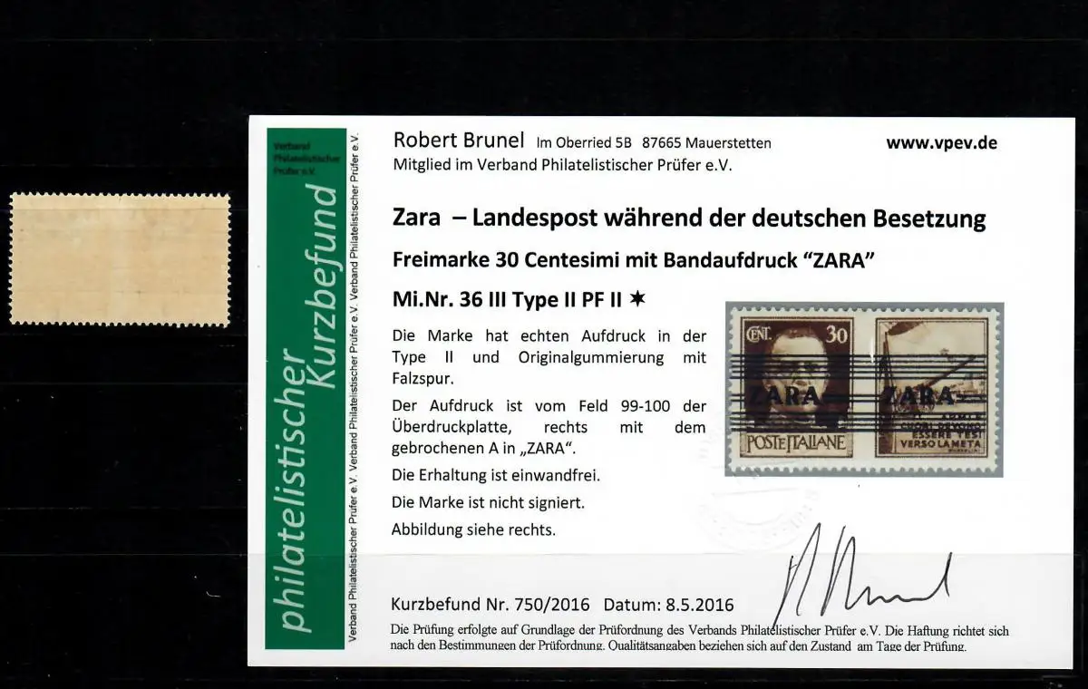 Zara: Min. 36 III, Erreur de plaque II, *, Falzspur