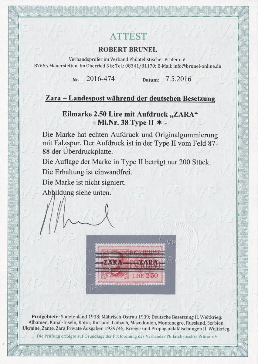 Zara: MiNr. 38 Type II, *: Seulement 200 pièces d'édition