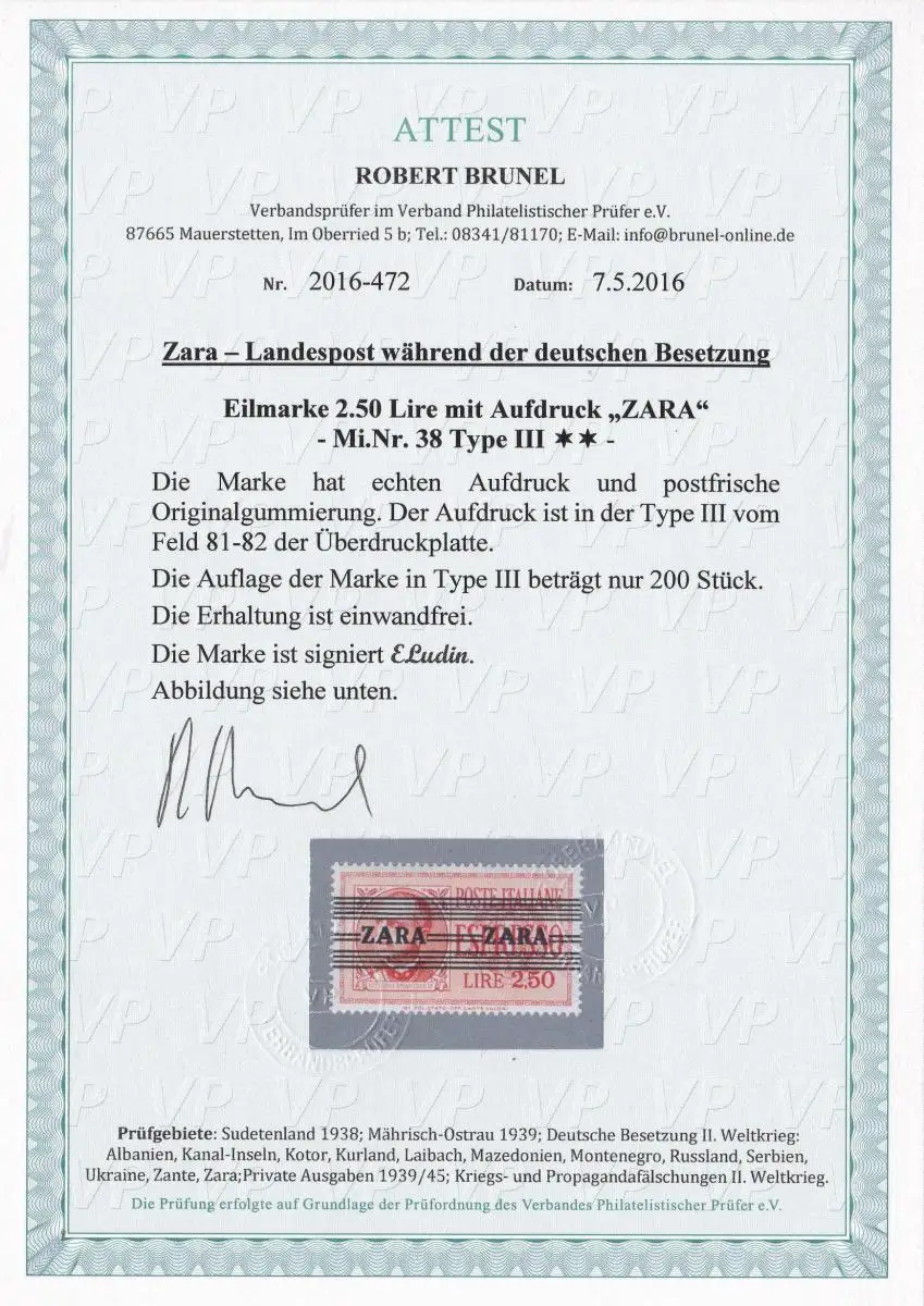 Zara: MiNr. 38 Type III, frais de port: 200 exemplaires seulement