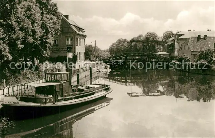 Zehdenick Blick zur Zugbruecke Motorboot Zehdenick postalisch gelaufen 1962 Erhaltung siehe scans [FriedD77] Frierer