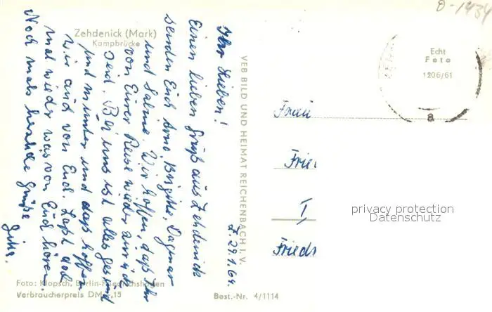 Zehdenick Kampbruecke Zehdenick postalisch gelaufen 1964 Erhaltung siehe scans [FriedD77] Frierer