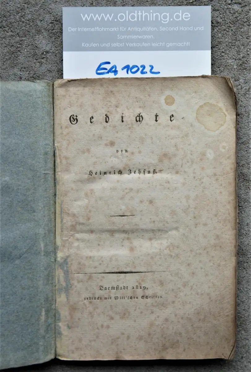 Darmstadt, Wild's Schriften, 1819, 172 pages, livre de poche, papier-back. Heinrich Zehfunze (*1787, † 1859), auteur et secrétaire du prince Emil de Hesse. Connu entre autres par sa description publiée en 1822 "Antiquités de la résidence Darmsstadd." Très rare, pas de résultats dans le KVK.
