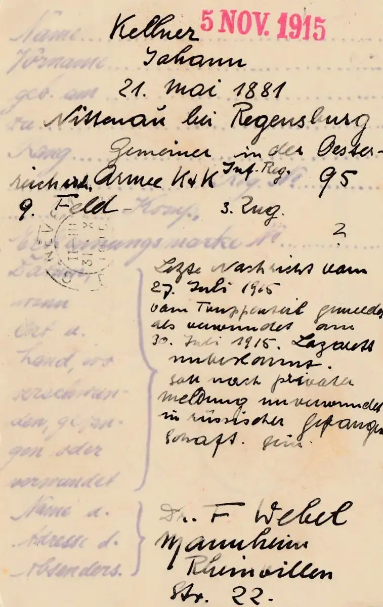Censuration: 1915: Envoi de prisonniers de guerre de Mannheim en Suisse: Testé