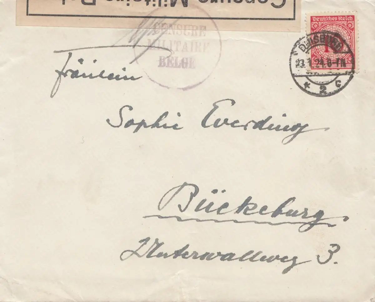 Censure: 1924: Lettre de Duisburg à la Belgique: Cresure belge