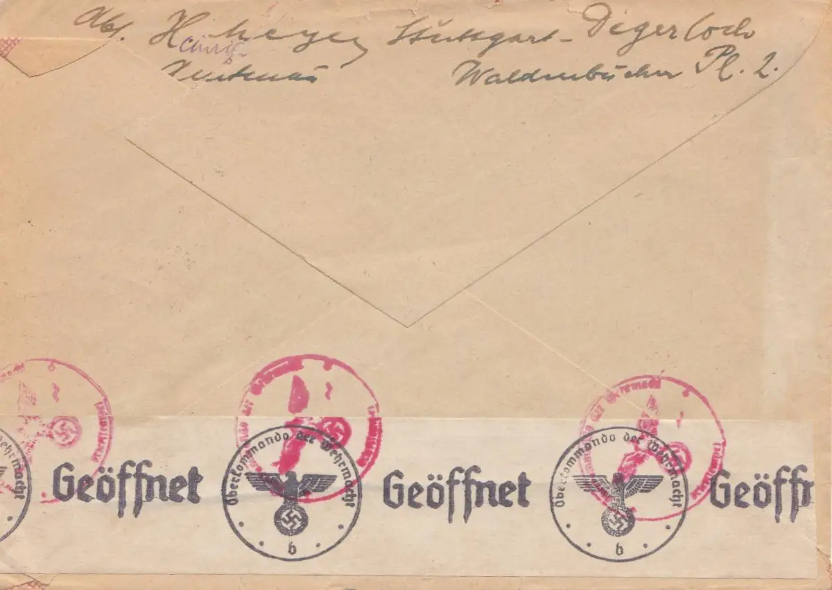 censure: 1941: Lettre de Stuttgart aux États-Unis: Retour de l'expéditeur