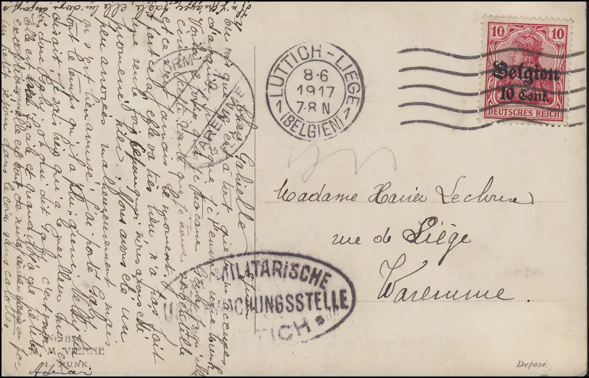 Censuration Service de surveillance militaire LÜTTICH 8.6.17 sur AK Filles avec poupées