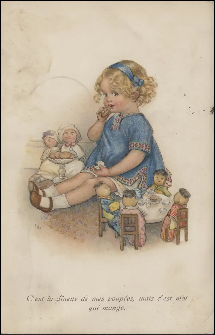 Censuration Service de surveillance militaire LÜTTICH 8.6.17 sur AK Filles avec poupées