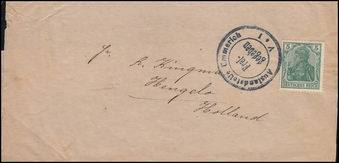 Censure Streifband Germania 5 Pf vers la Hollande Partageé à l'étranger Emmerich