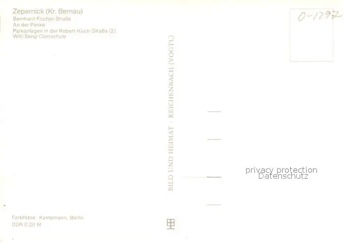 Zepernick Bernhard Fischer Strasse Panke Willi Seng Oberschule Zepernick postalisch nicht gelaufen nach 1965 Erhaltung siehe scans [KathaD81] Kathoren