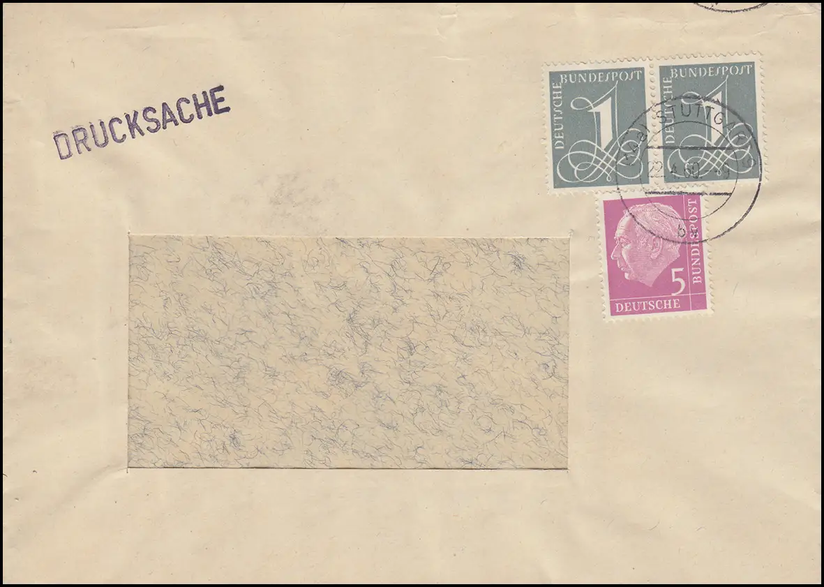 Paragraphe 1 Pf dans la paire avec Heuss 5 PF MiF sur l'impression STUTTGART 22.4.60