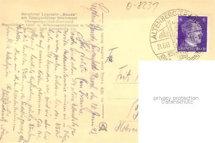 Zinnwald-Georgenfeld Berghotel Lugstein Baude Georgenfelder Hochmoor Blumenwiese Zinnwald-Georgenfeld postalisch gelaufen 1943 Erhaltung siehe scans [FriedD77] Frierer