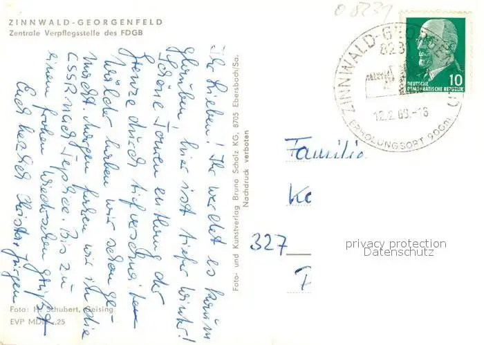 Zinnwald-Georgenfeld Zentrale Verpflegsstelle des FDGB Winterlandschaft Zinnwald-Georgenfeld postalisch gelaufen 1967 Erhaltung siehe scans [FriedD77] Frierer