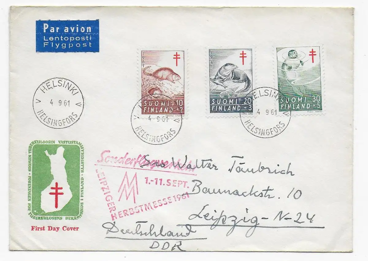 air mail Helsinki FDC to Leipzig: Transport aérien spécial Leipziger Messe 1961