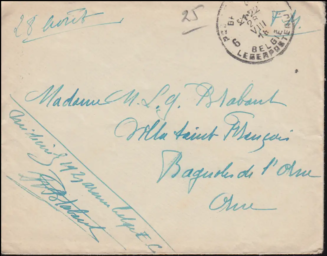 cachet du siège militaire belge 28.8.1918 sur lettre avec contenu
