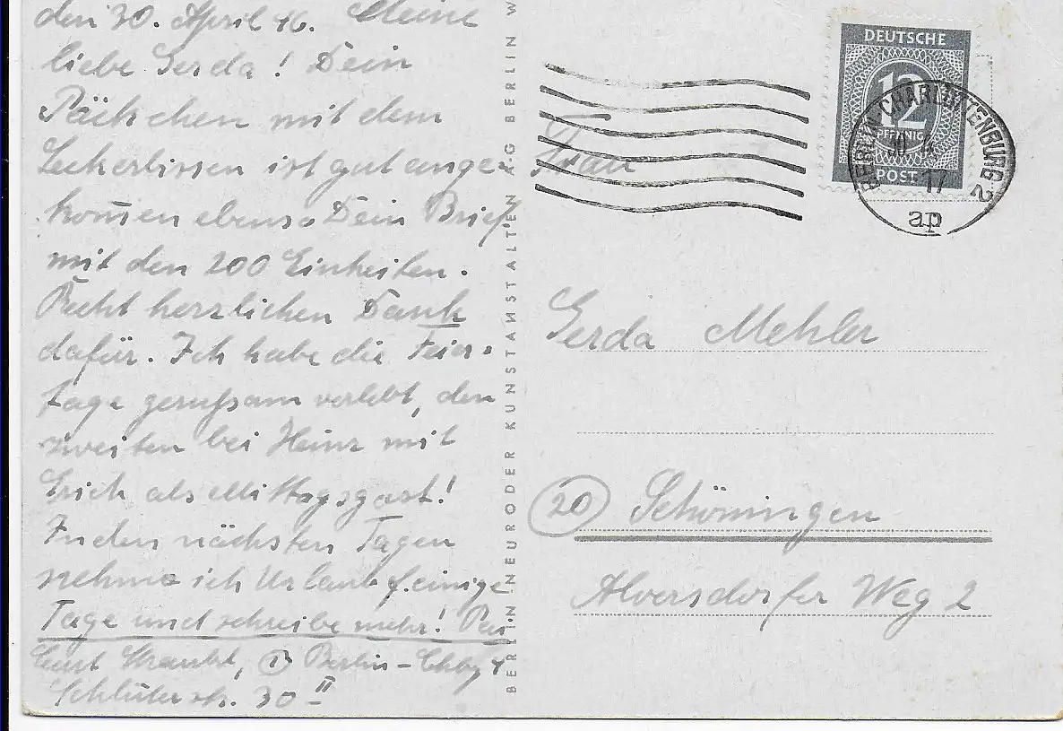 carte de vue rare Berlin 1933+1945/46 - Anglais - après Schöningen