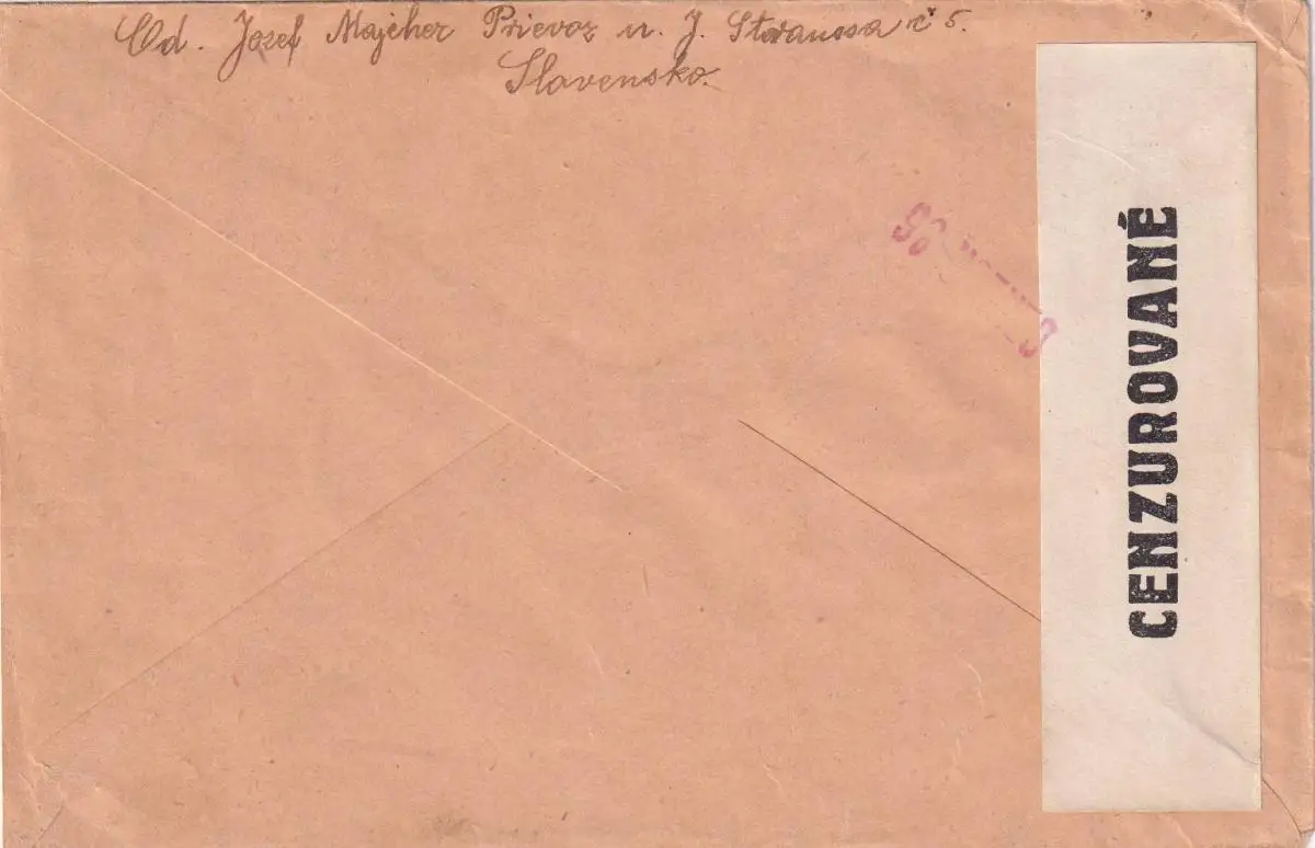cover Prievoz 1942 to Hungary, centor