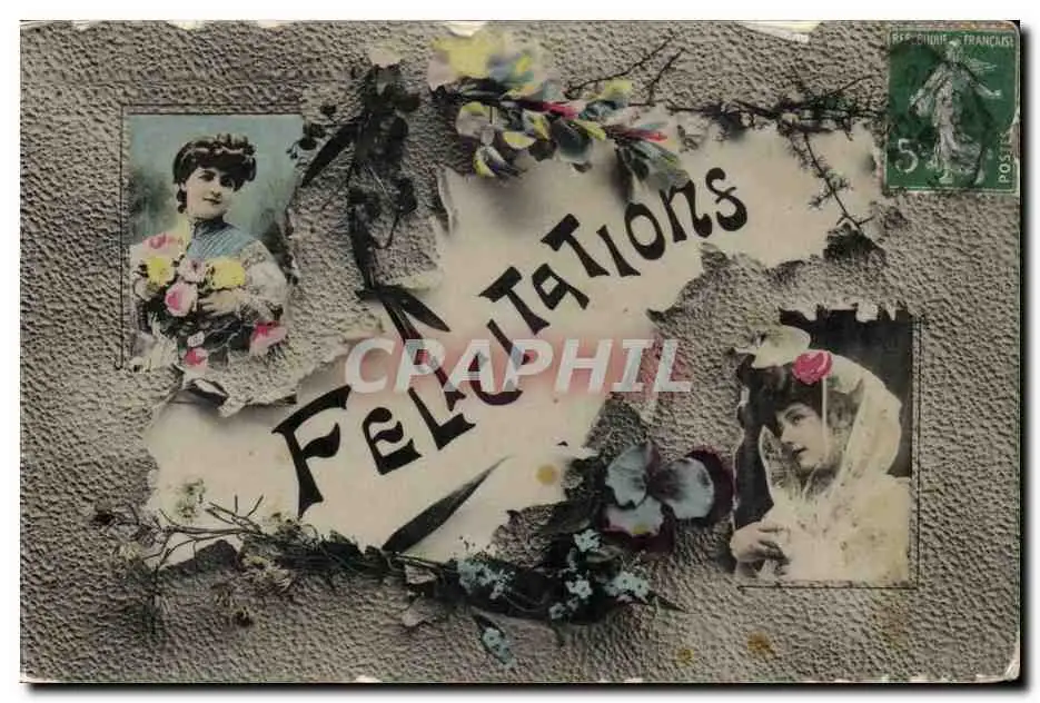 fantaisie - Felicitations Femme avec fleurs - Woman with white veil - Cartes postales