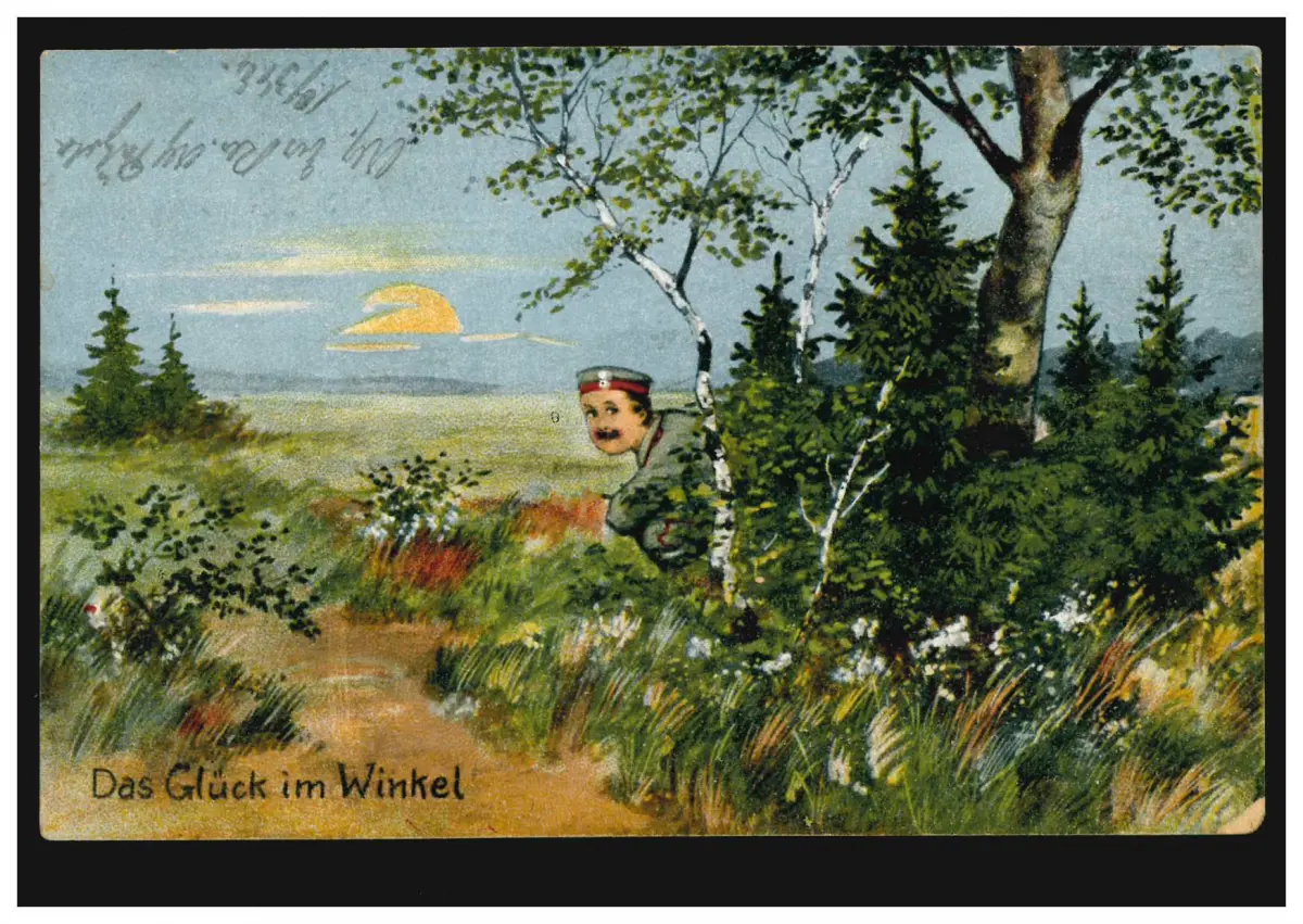 humour-AK Sur le lauer: Le bonheur dans l'angle, Feldpost 27.1.1918 à Hanovre