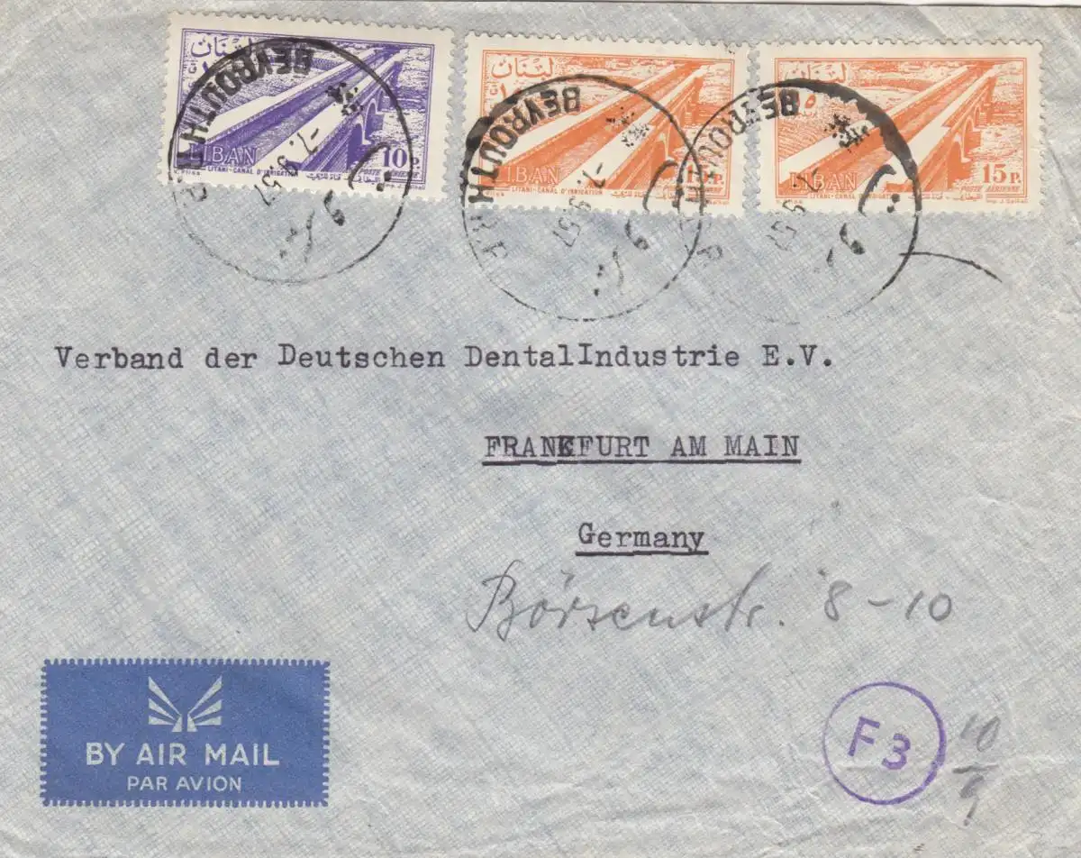 letter air mail Beyrouth to Frankfurt 1957