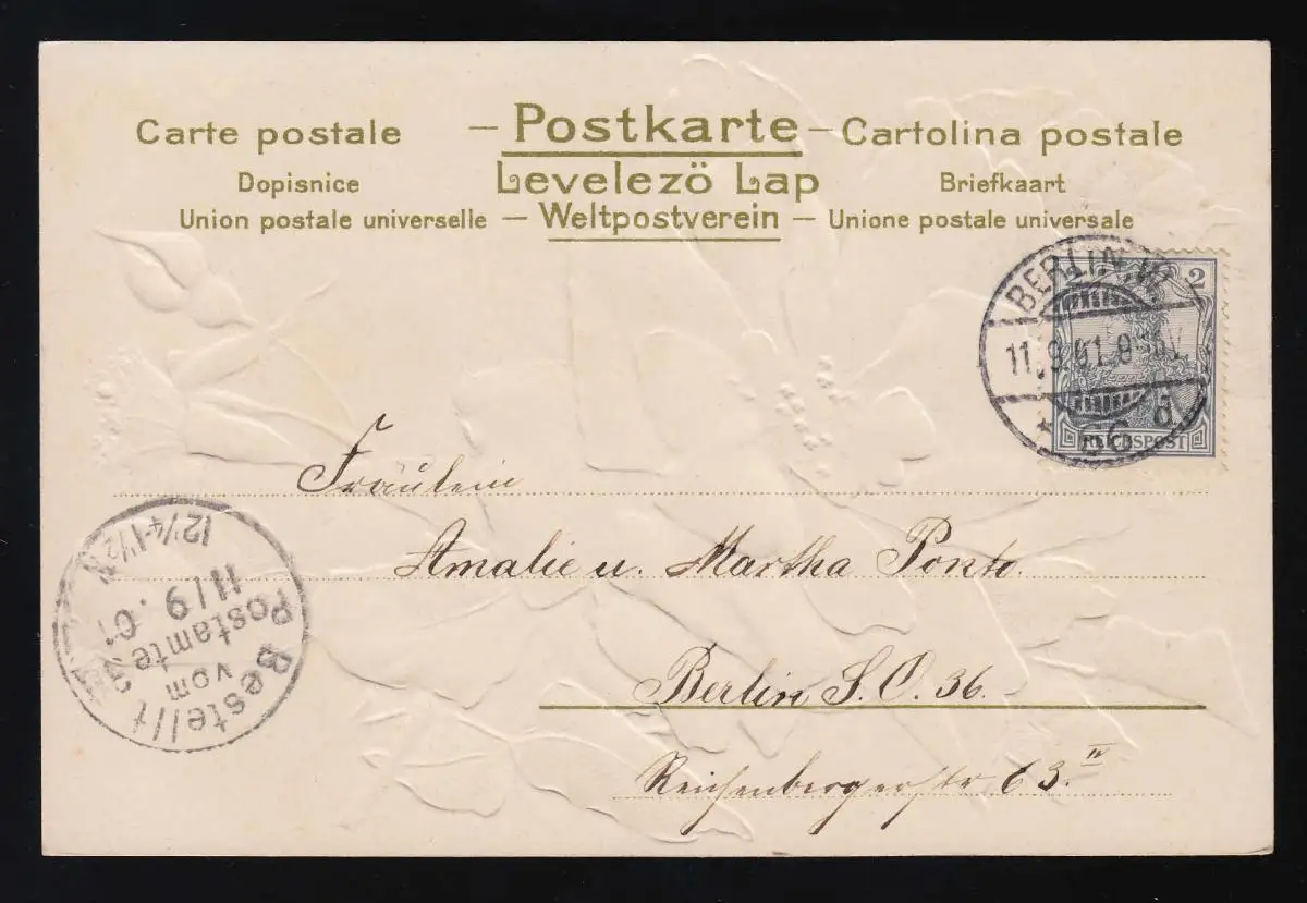 rose rose fleur bourgeons carte d'artiste sign. peinture, Berlin Postamt 38 11.9.1901