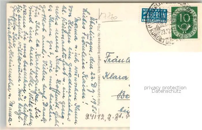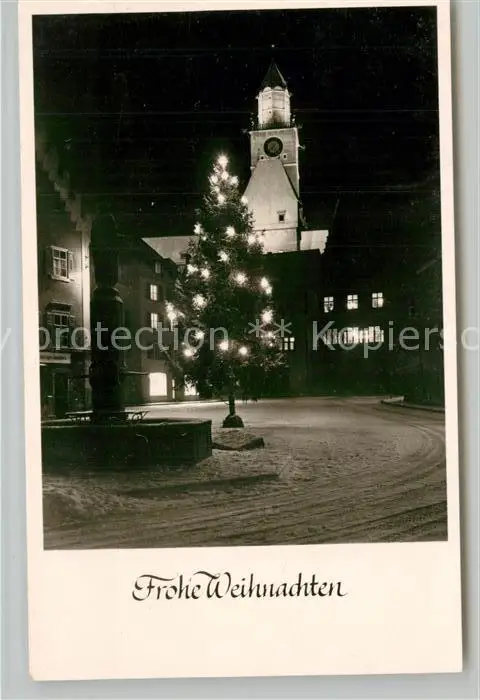 ueberlingen_Bodensee Hofstatt Brunnen Weihnachtsbaum Muensterkirche Nachtaufnahme Weihnachtskarte ueberlingen Bodensee postalisch gelaufen 1953 Erhaltung siehe scans [FriedD77] Frierer