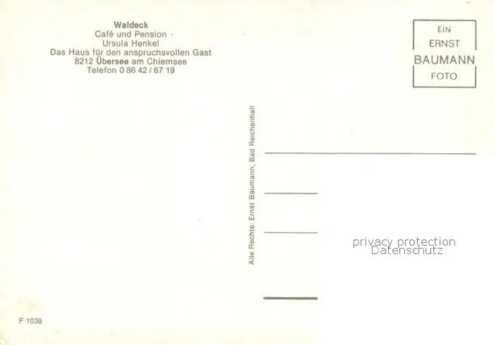 uebersee_Chiemsee Cafe Pension Waldeck Gastraeume Zimmer Segelpartie postalisch nicht gelaufen nach 1965 Erhaltung siehe scans [WerneD78] WernPID7