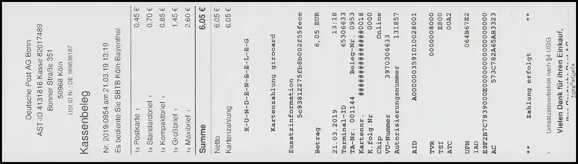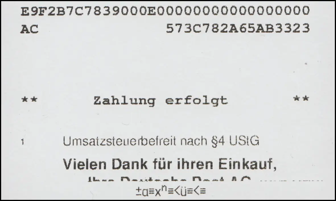 Beau document sur la situation de l'imprimante de reçu insuffisante (imprimée ci-dessous avant l 'interruption) aux machines d'essai en mars 2019. Le reçu livré peut légèrement différer de la figure car il existe plusieurs fois. N° de catalogue: 10 Examen: original Numéro d \'article: 50040010600001