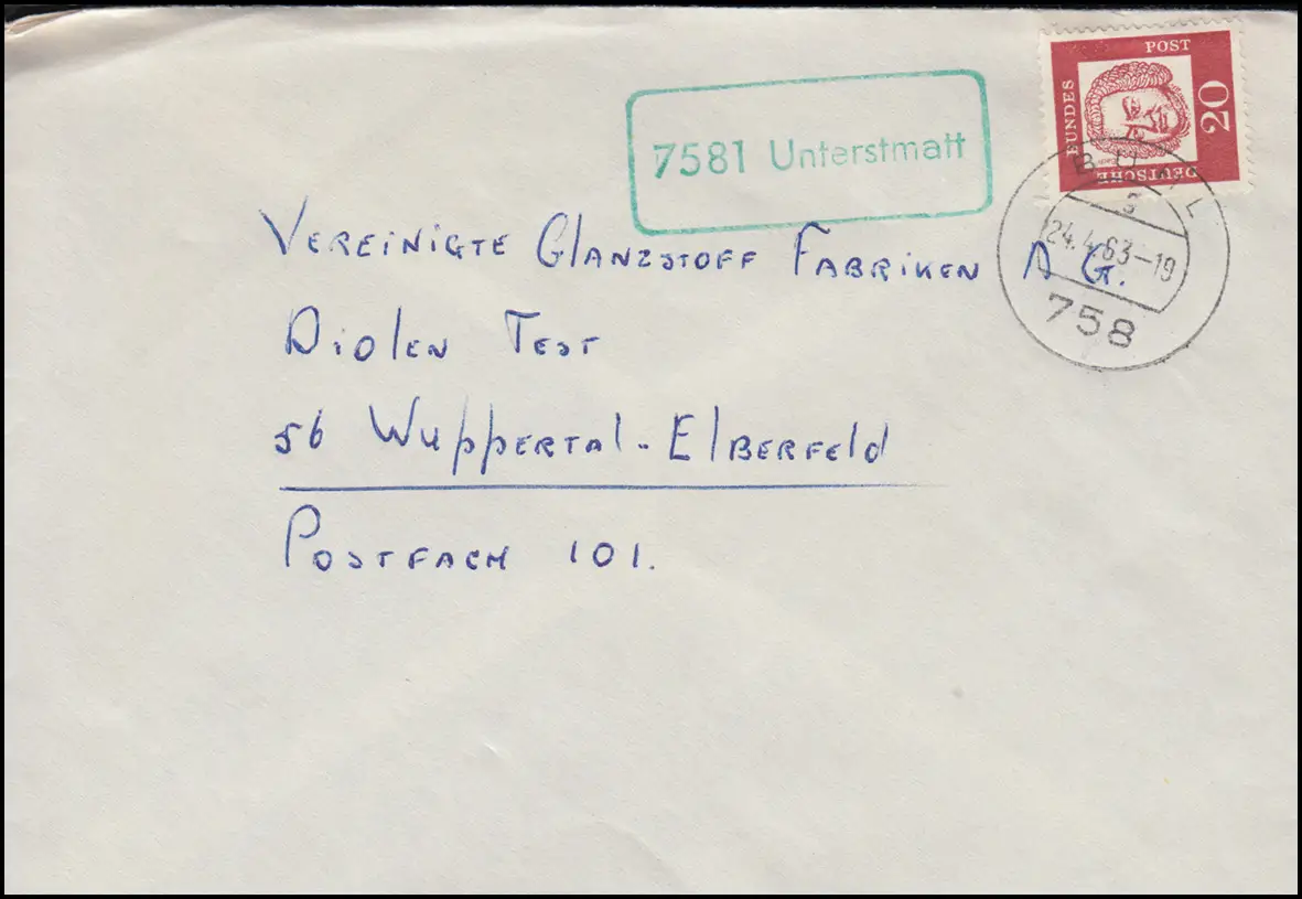 vert temple de poste de campagne Soutenu lettre BÜHL 24.4.1963