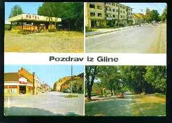 x00088; Pozdrav i? Gline. - Gelaufen 1975. Kl. Eckknick. (Jugoslawien)