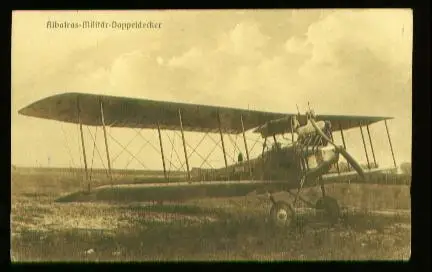 x00166; Albatros-Militär-Doppeldecker. - Nicht gelaufen. Rückseite mit Text. 1917. (Flugzeuge, I Weltkrieg)