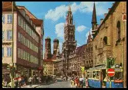 x05369; MÜNCHEN. Marienplatz mit Rathaus und Frauenkirche. - Gelaufen. (NPLZ 80000, Straßenbahn).