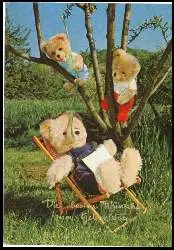 x05677; Kuscheltiere im Garten. - Gelaufen 1974. (Spielzeug, Kuscheltiere).