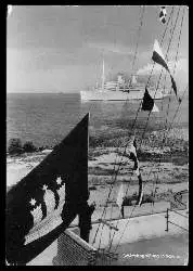 x06402; Schiffsbergrüssung in Schulau. - Gelaufen 1961. (Schifffahrt, Schiffe).
