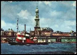 x11393; Hamburg. Hafen und Michaeliskirche. - Gelaufen 1968. Knicks. (NPLZ 20000).