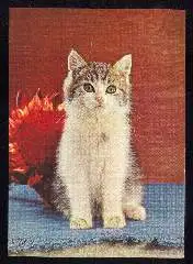x12090; Katze. - Ungebr. (Tiere, Katze, Haustiere).