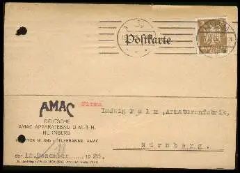x13961; Nürnberg. AMAC. - Gelaufen 1925. 2xLoch. (NPLZ 90400, Firmen, Industrie)