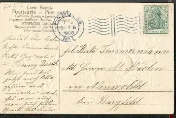 x16021; Fahnenstempel: Hamburg No1, 1.4.1908. Auf Ansichtskarte